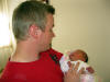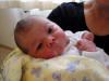 Yndislega falleg, sólarhrings gömul Ásgeir Viðar stoltur með litlu prinsessuna í fanginu